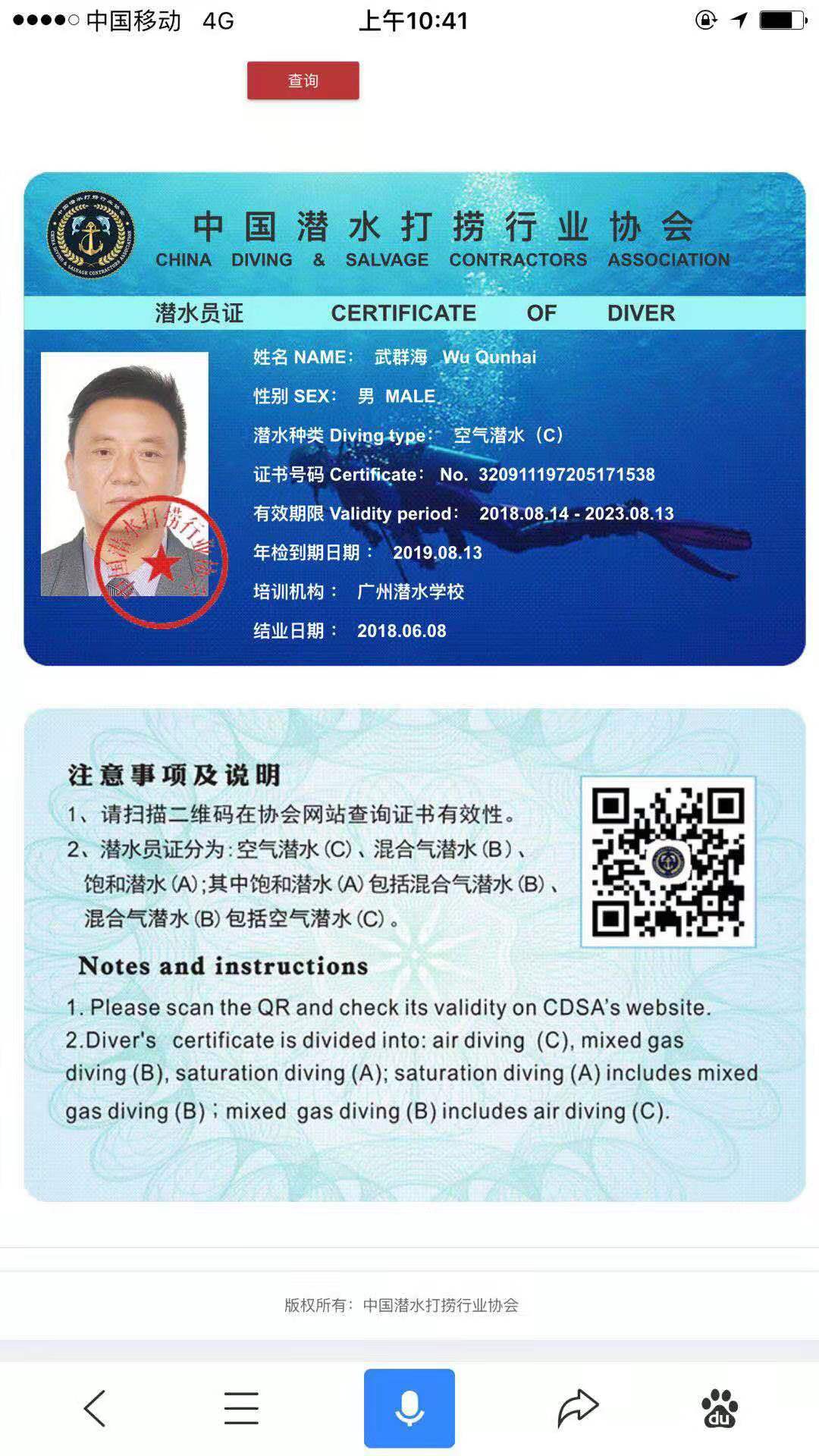 公司現(xiàn)有施工隊伍五個,專業(yè)潛水員30余人,技術人員20余人,多次參加了 重點項目施工:如三門核電廠,浙江跨海大橋,內(nèi)蒙烏錫鐵路黃河特大橋,寧杭高鐵,京福高鐵等水下切割、水上、水下拆除,水下混凝土灌注,水下鋼護筒切割等任務。